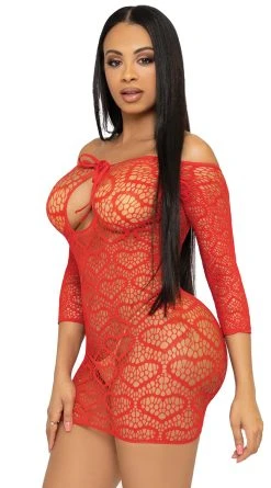 Feel the seduction in this stunning chemise set featuring sheer mesh and contrast eyelash lace underwire cups, a criss-cross front detail, adjustable spaghetti straps, a hook and eye back closure with a keyhole, a triangular front keyhole, a sheer mesh skirt, and a matching g-string panty.