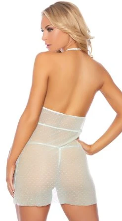 Get a two for one look with this sexy babydoll set featuring sheer, underwire cups with a geometric print, strappy detailing, adjustable spaghetti straps, a hook and eye back closure, a sheer, removeable skirt with a geometric trim, and a matching thong and a strappy waistband with an O-ring accent.