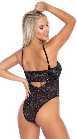 Give your lover something to look forward to in this sexy bodysuit featuring solid lace cups with a scalloped trim, a criss-cross bust detail, delicate cap sleeves, a cascading lace bodice with a sheer diamond shape, a deep scoop back, and a cheeky cut back.