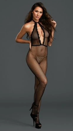 Xgen Products Halter V-Neck Fishnet Bodystocking With Open Crotch